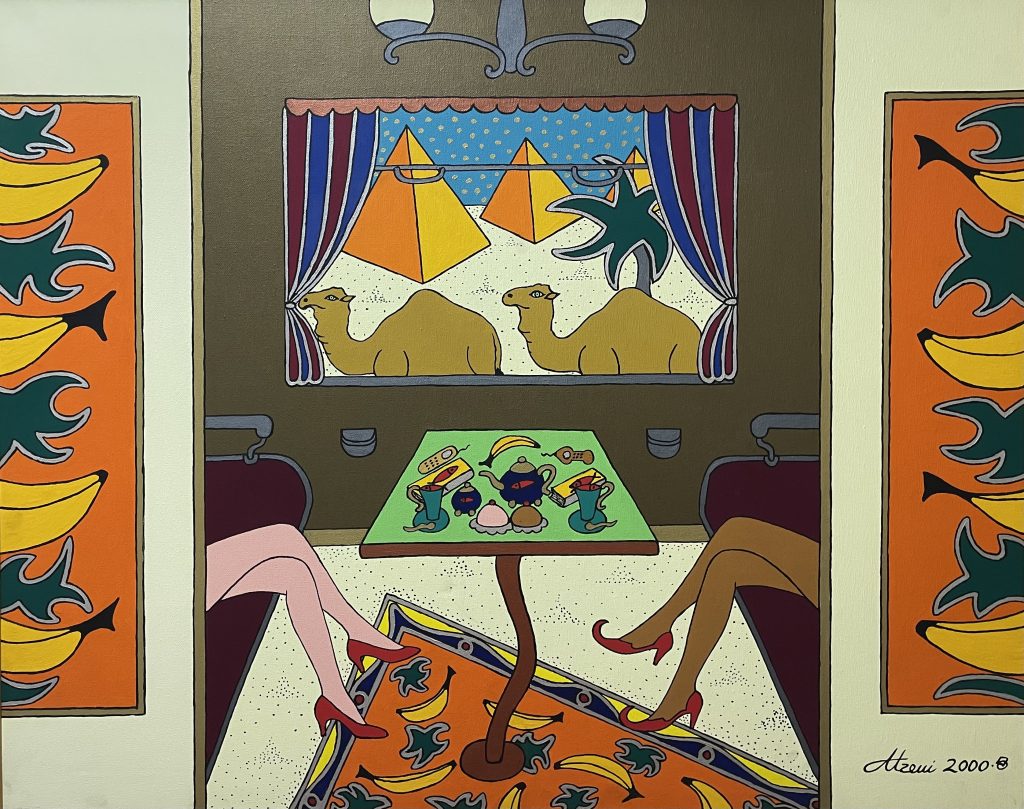 Born in 1954 in Cagliari, Sardinia, Giampaolo Atzeni is a world-renowned artist whose latest project is paintings of surrealist inspiration with a distinctive style that the artist began developing in the ‘90s. After completing his Architecture studies in Florence, he worked as an actor in theatre and later as a photojournalist working in Africa, India, and the Middle East. He transitioned to digital art at the end of the 1990s during the spread of new computerized technologies.. From 2002 he worked in collaboration with “Arte In” magazine as a journalist and photographer. From 2004 the “Brem” realized heating radiators sculptures with elements peculiar of his artwork in the Brem Art line. In 2012 he began a collaboration with Gobbo Salotti for the realization of design works coated fabrics made from his pictorial works. In 2013 he started designing with the brand “Brucle” a line of bags made up of prints from his paintings on environmentally sustainable materials. His works have been exhibited in major museums and public galleries. He is currently living in Rome.